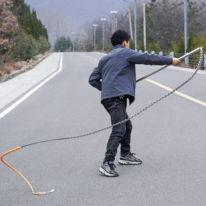 Handcrafted from Industrial-Grade Manganese Steel (the same material used in heavy cranes), this whip combines a massive 1.2-meter lever arm with a dense, blackened chain. It is built for one purpose: Explosive Power Generation.